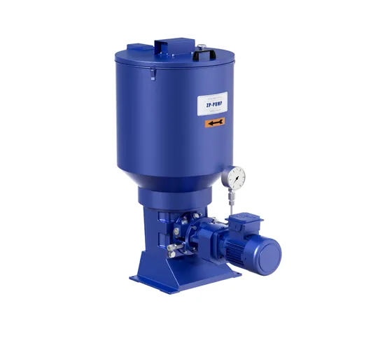 Pompy ZP08/14/24 są stosowane głównie w układach dwużyłowych lub jako pompy zasilające i mają maksymalne ciśnienie robocze 400 barów (5 800 psi). W zależności od układu systemu, te pompy elektryczne mogą dostarczać smar w odległości do 100 metrów i więcej Dostępne z 40, 60 lub 100 L reser voir, ciśnieniowe pompy ZP08/14/24 są standardowo wyposażone w zawór bezpieczeństwa, zawór zwrotny, filtr smaru i manometr.